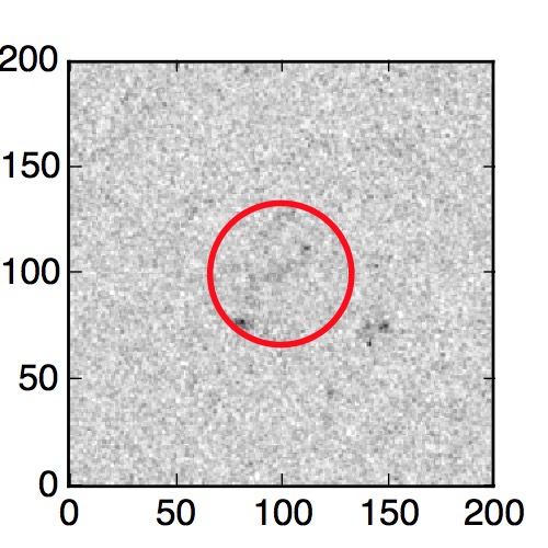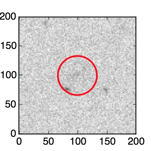 The red circle in the various panels is 1" in radius. The images are 6"x6".