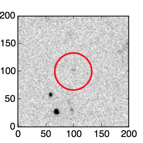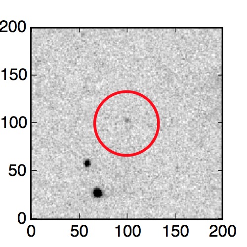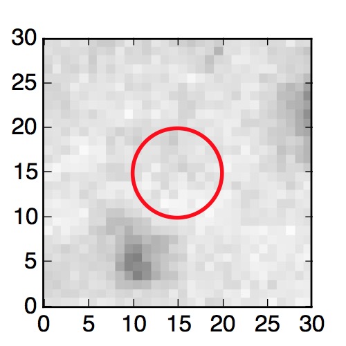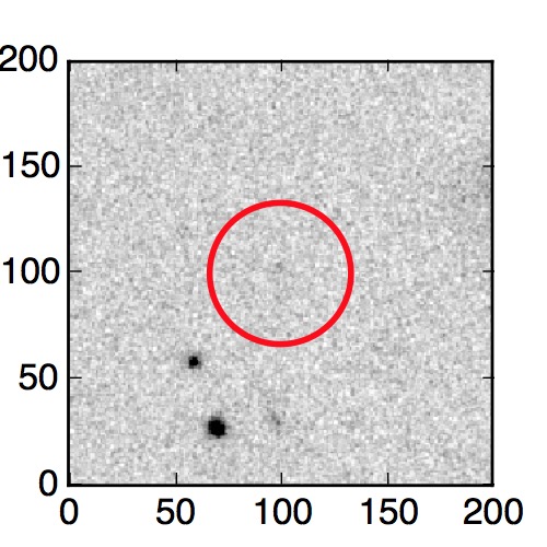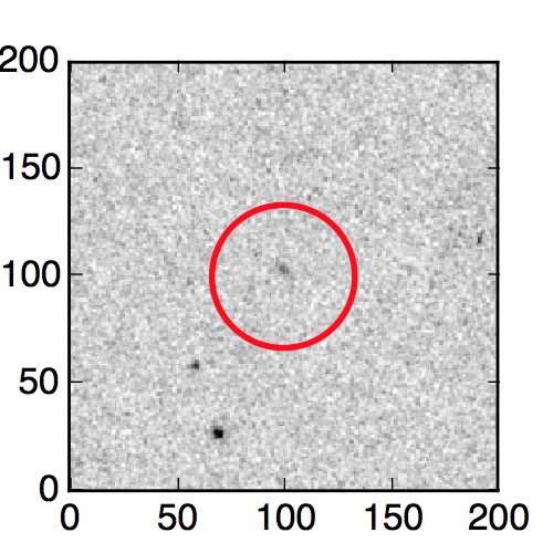 The red circle in the various panels is 1" in radius. The images are 6"x6".
