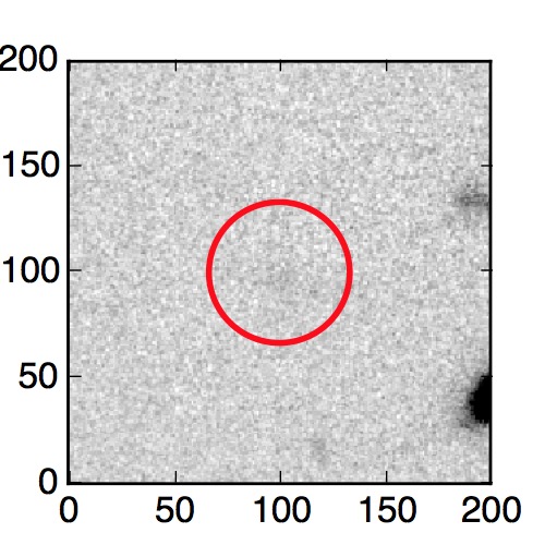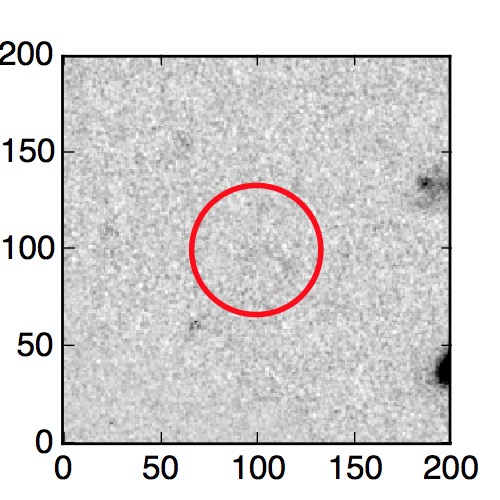 The red circle in the various panels is 1" in radius. The images are 6"x6".