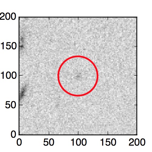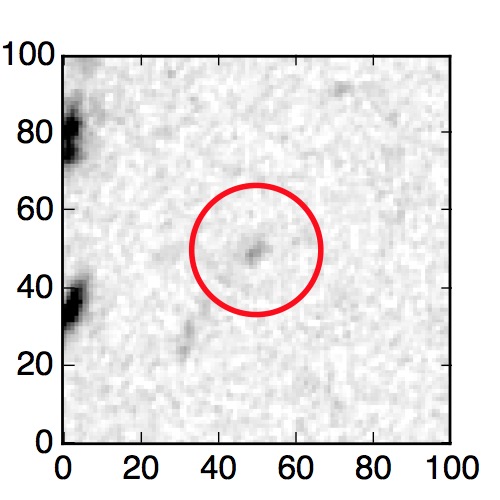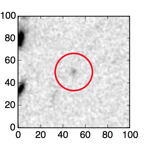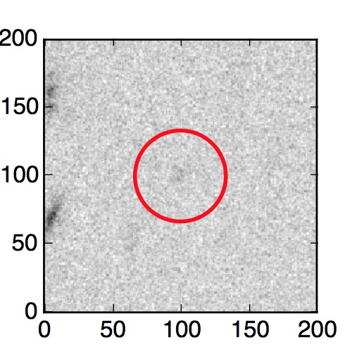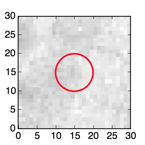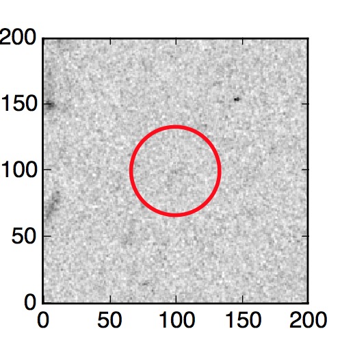 The red circle in the various panels is 1" in radius. The images are 6"x6".