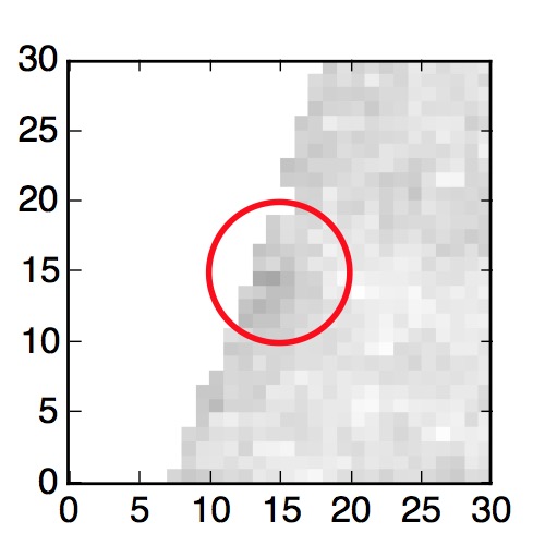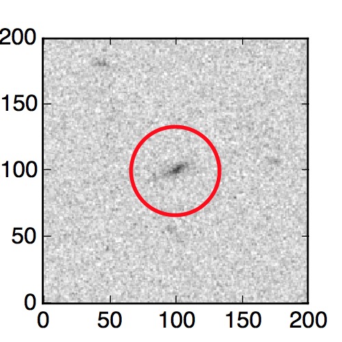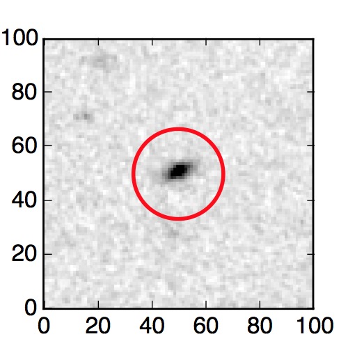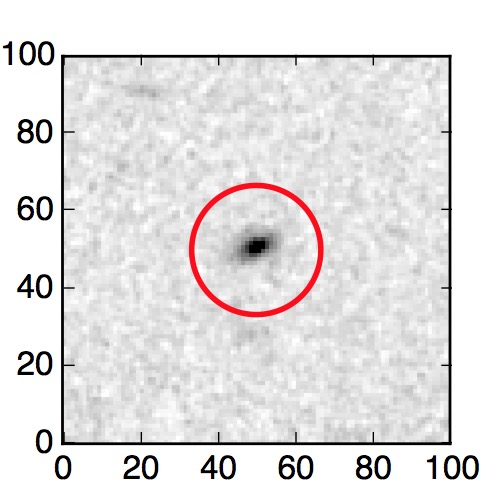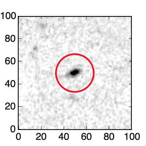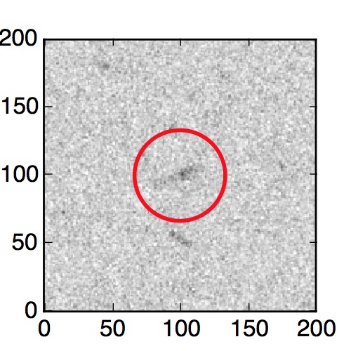The red circle in the various panels is 1" in radius. The images are 6"x6".
