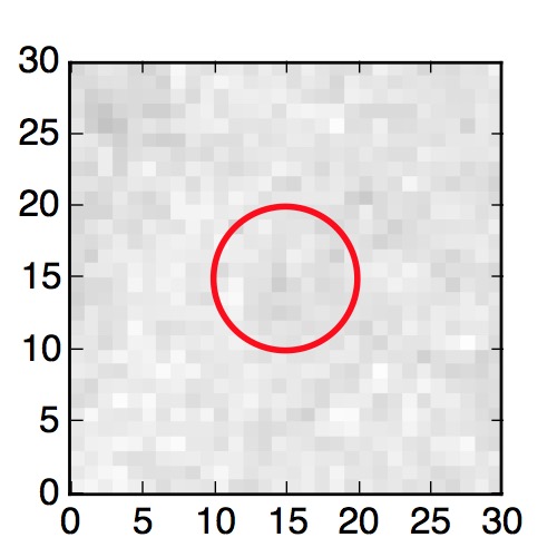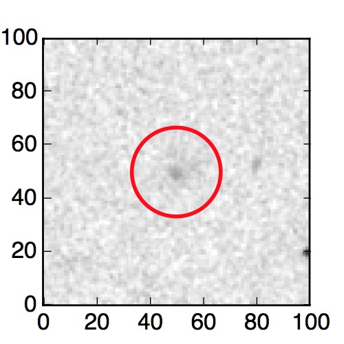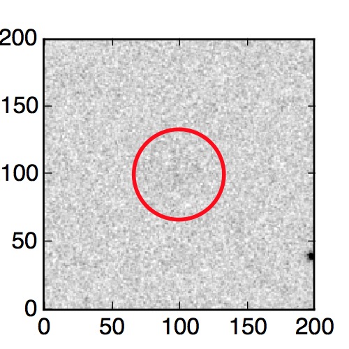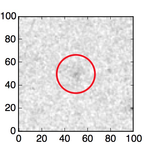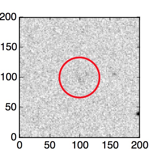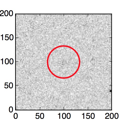 The red circle in the various panels is 1" in radius. The images are 6"x6".