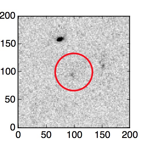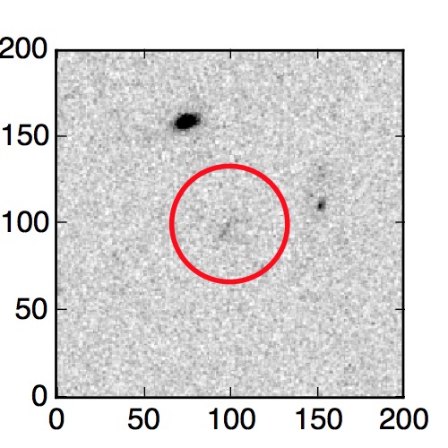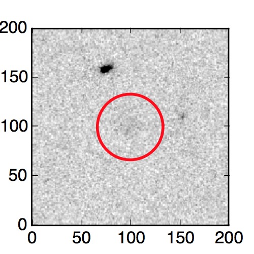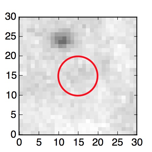 The red circle in the various panels is 1" in radius. The images are 6"x6".