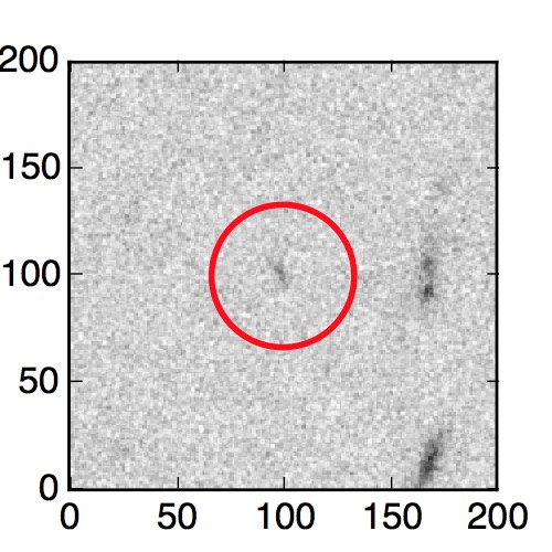 The red circle in the various panels is 1" in radius. The images are 6"x6".