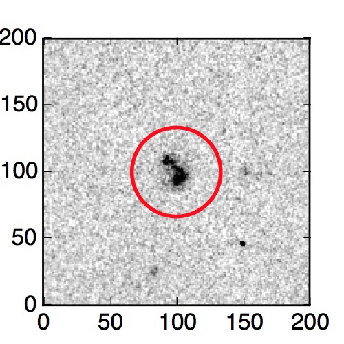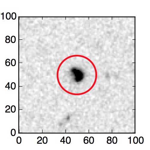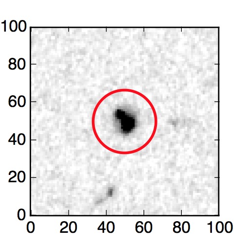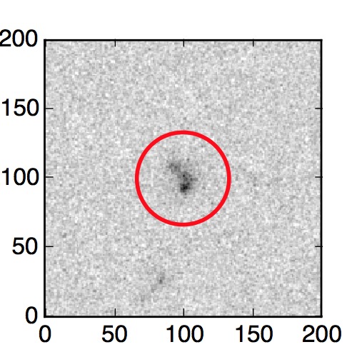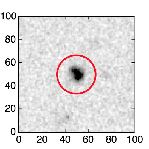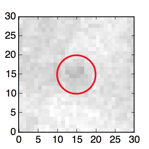 The red circle in the various panels is 1" in radius. The images are 6"x6".