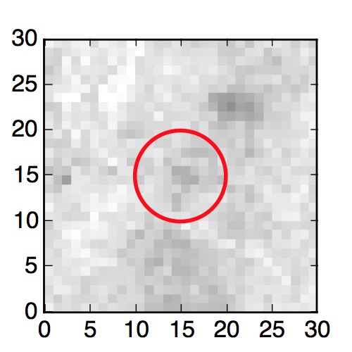 The red circle in the various panels is 1" in radius. The images are 6"x6".