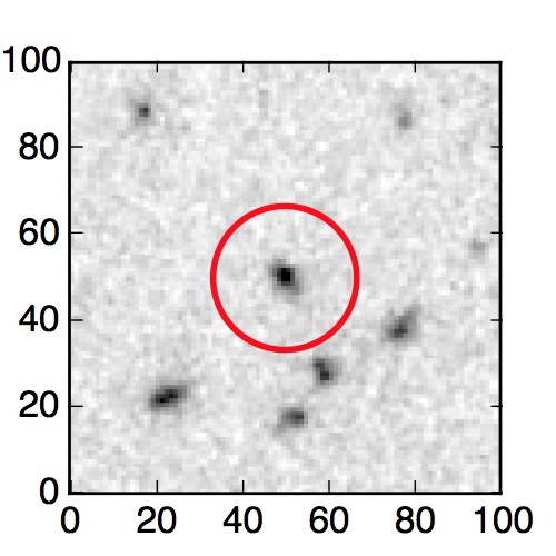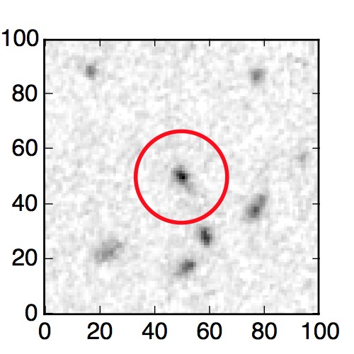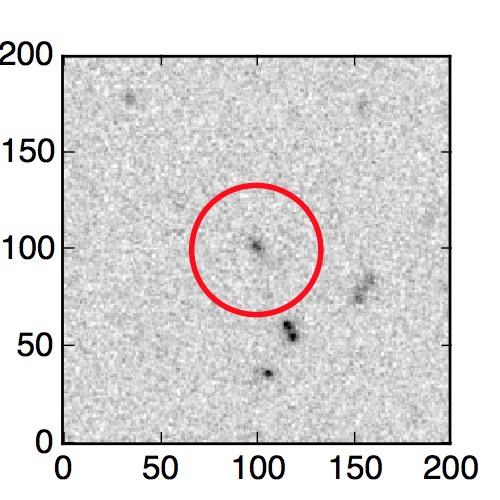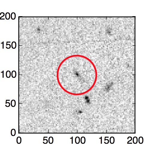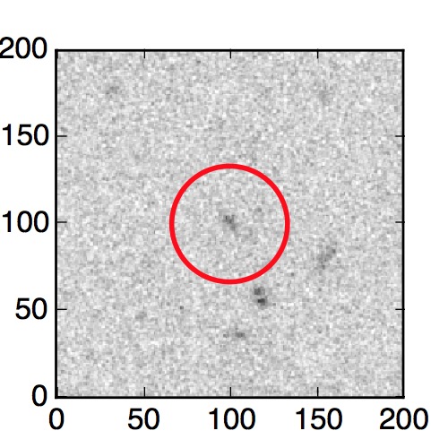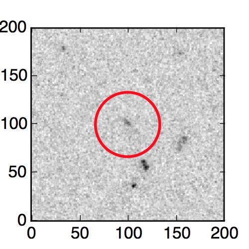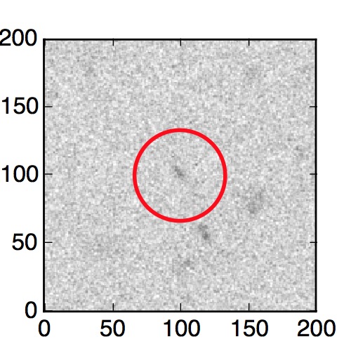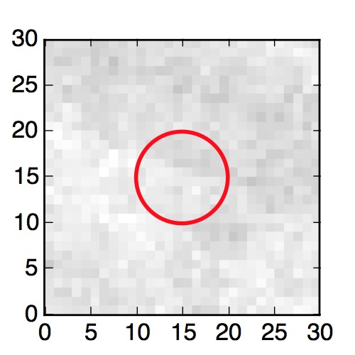 The red circle in the various panels is 1" in radius. The images are 6"x6".