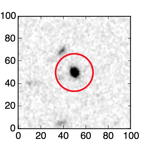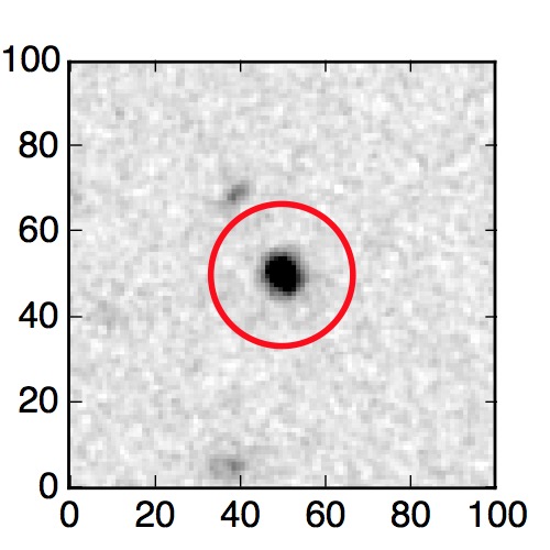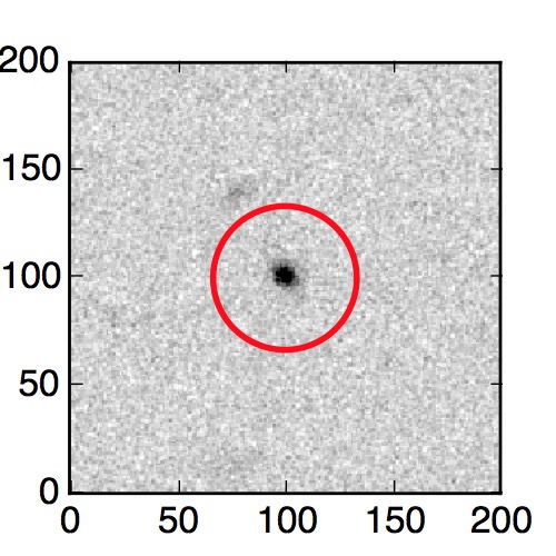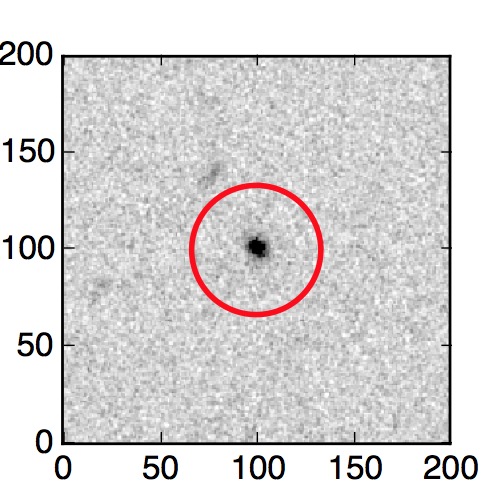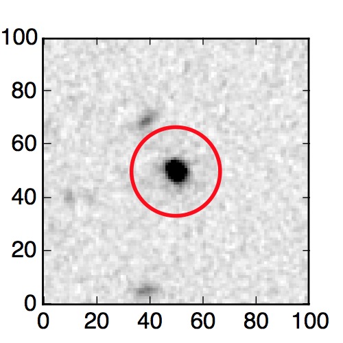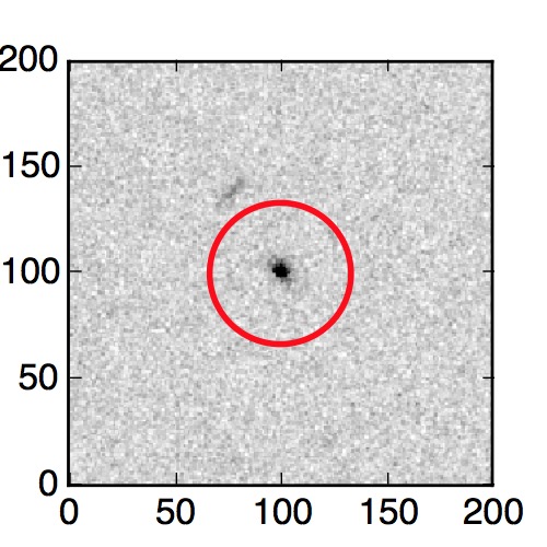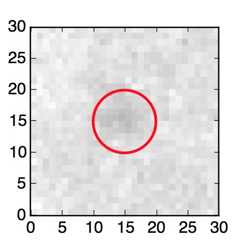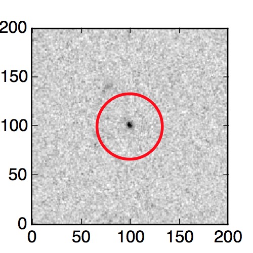 The red circle in the various panels is 1" in radius. The images are 6"x6".