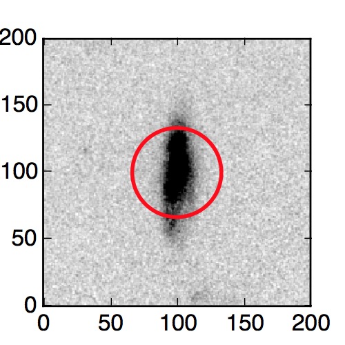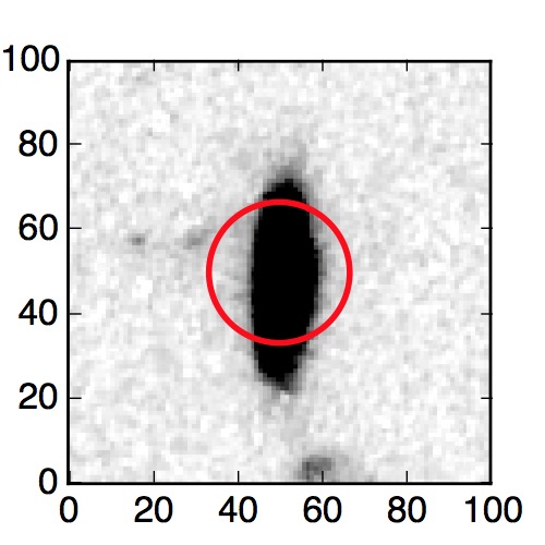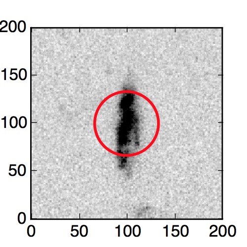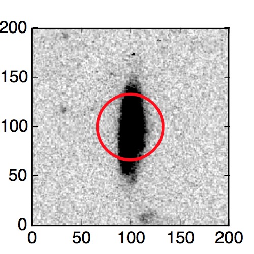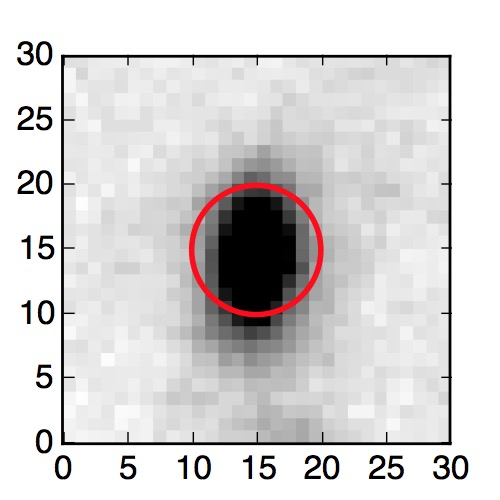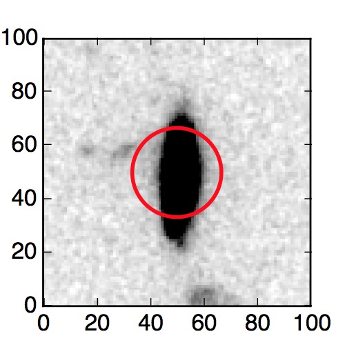 The red circle in the various panels is 1" in radius. The images are 6"x6".