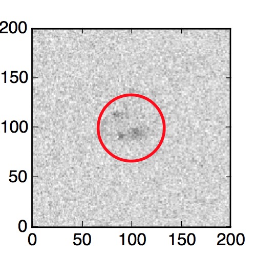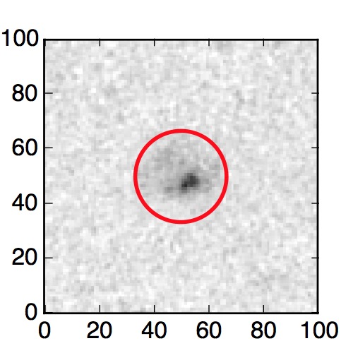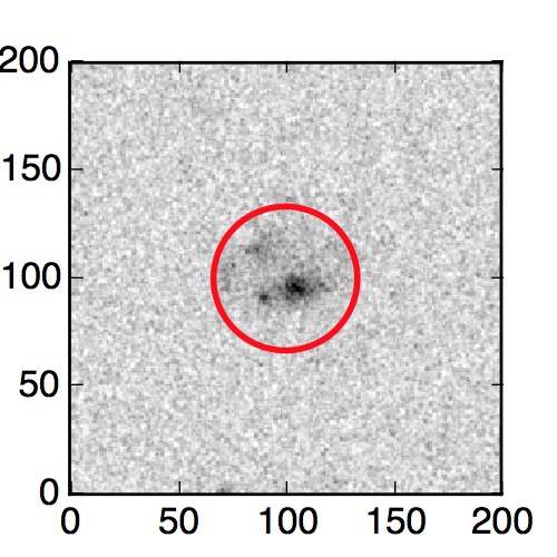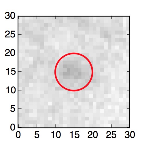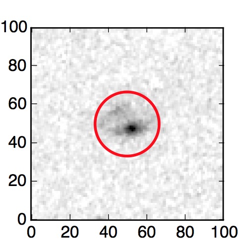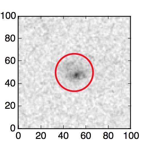 The red circle in the various panels is 1" in radius. The images are 6"x6".