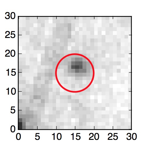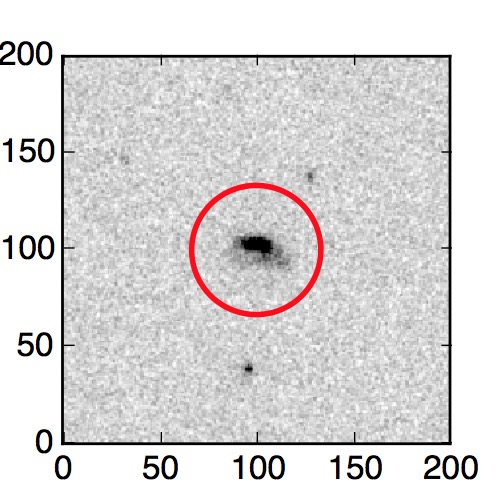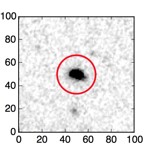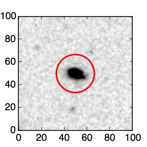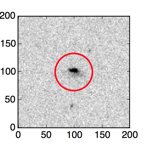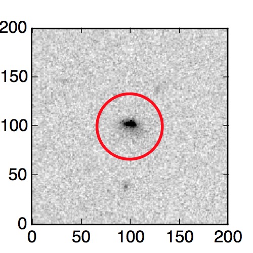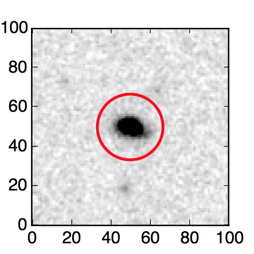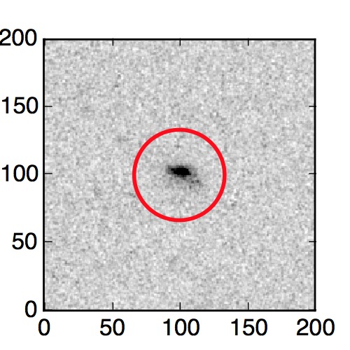 The red circle in the various panels is 1" in radius. The images are 6"x6".