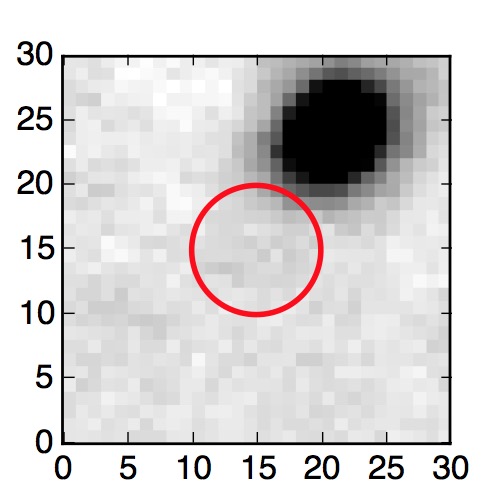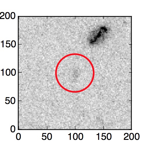 The red circle in the various panels is 1" in radius. The images are 6"x6".
