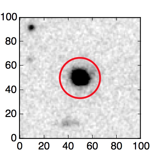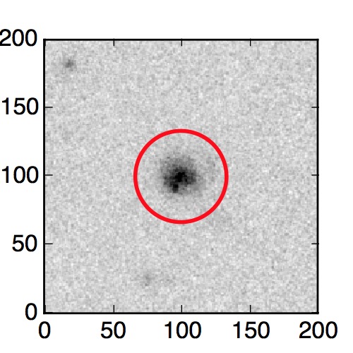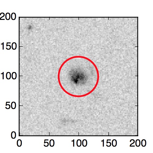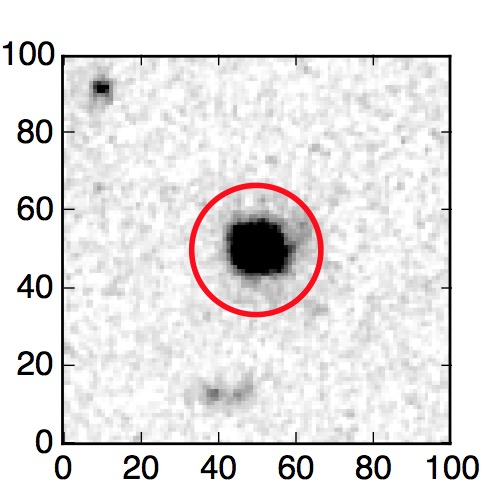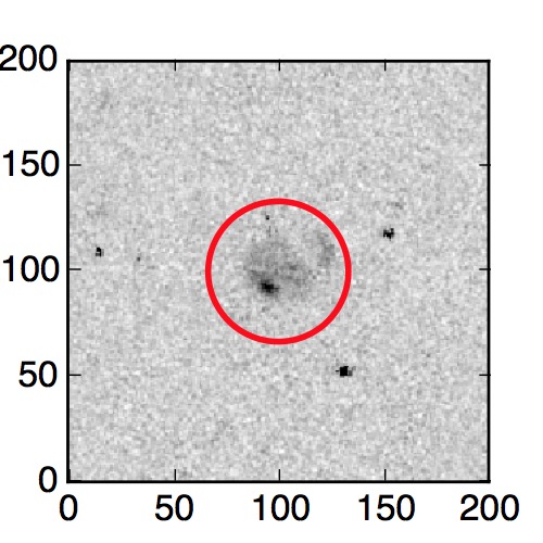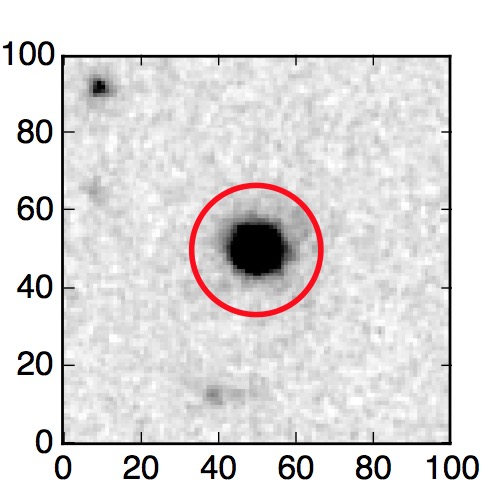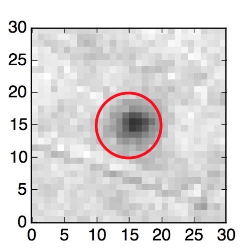 The red circle in the various panels is 1" in radius. The images are 6"x6".