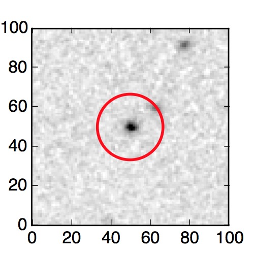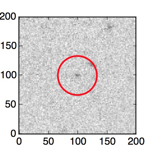 The red circle in the various panels is 1" in radius. The images are 6"x6".