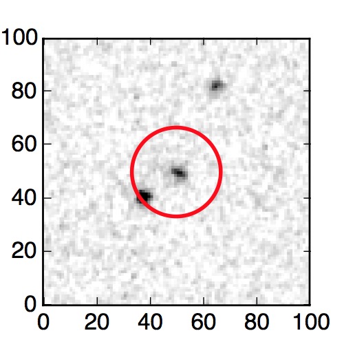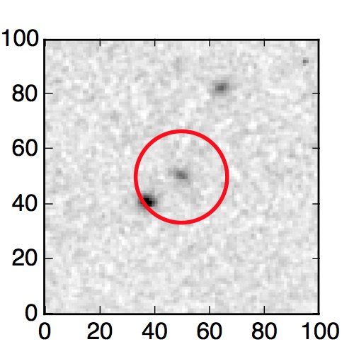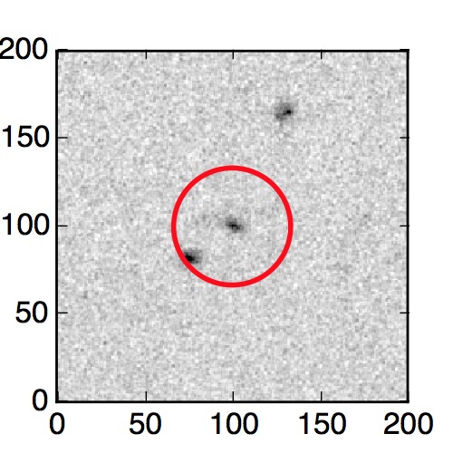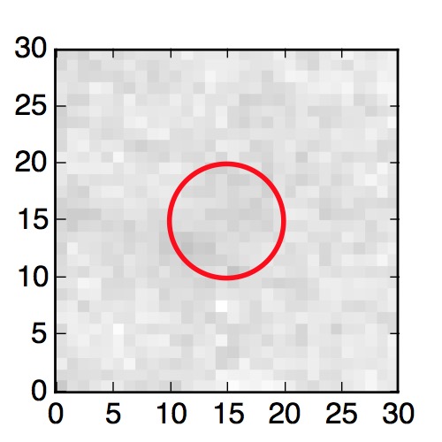 The red circle in the various panels is 1" in radius. The images are 6"x6".