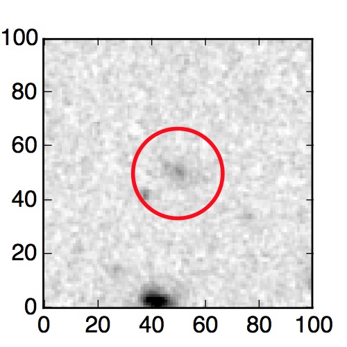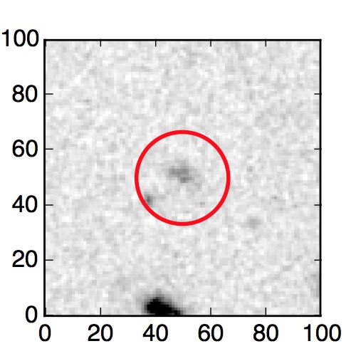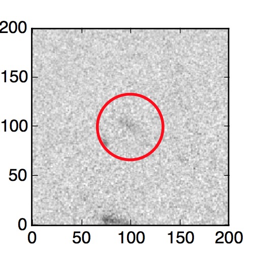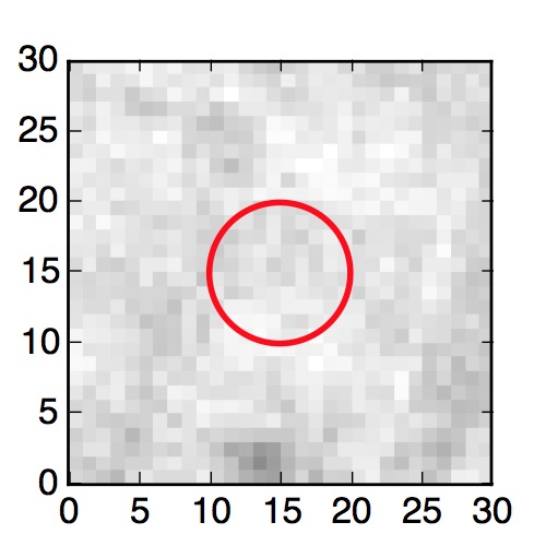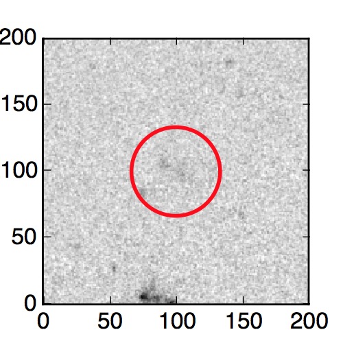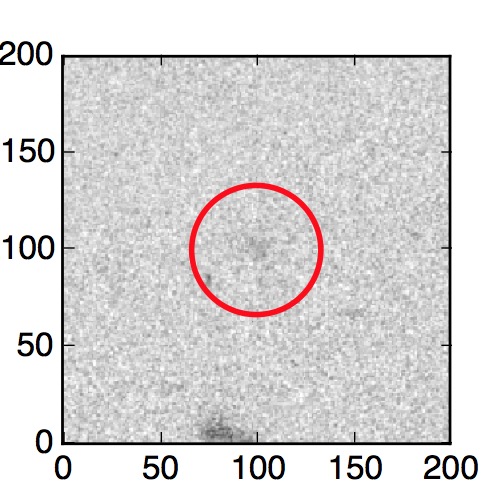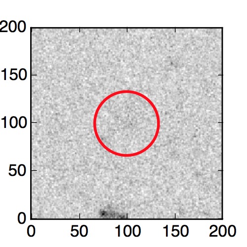 The red circle in the various panels is 1" in radius. The images are 6"x6".