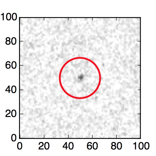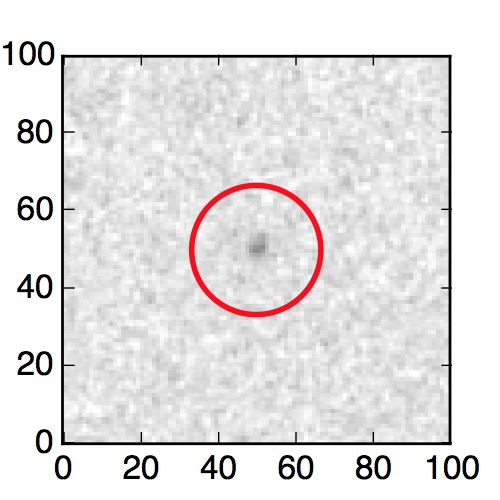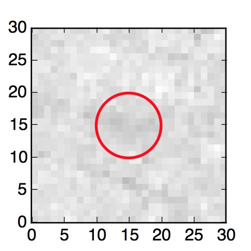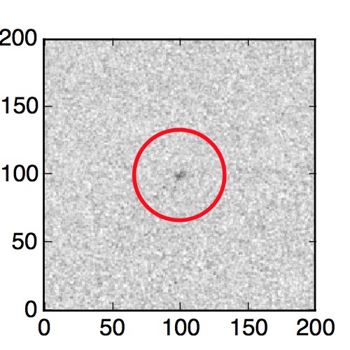 The red circle in the various panels is 1" in radius. The images are 6"x6".