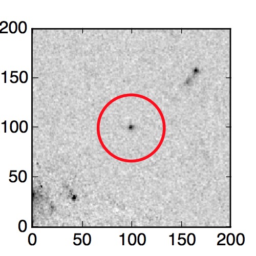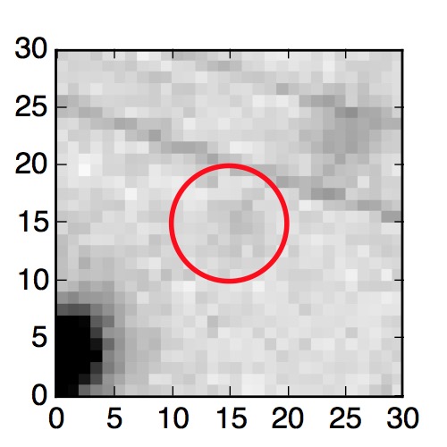 The red circle in the various panels is 1" in radius. The images are 6"x6".