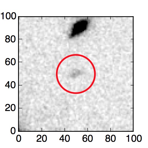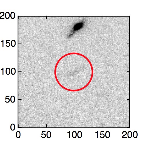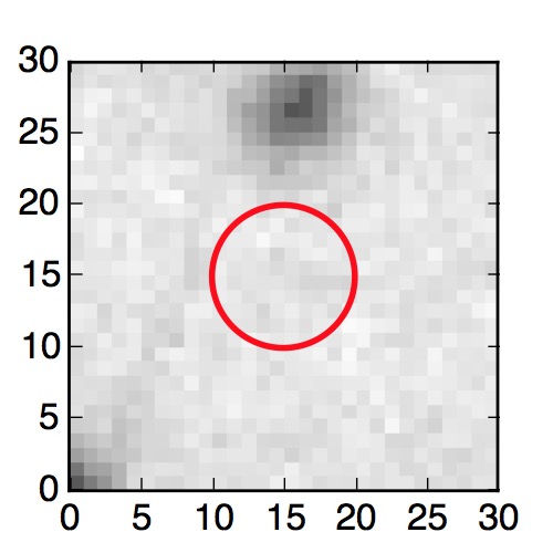 The red circle in the various panels is 1" in radius. The images are 6"x6".