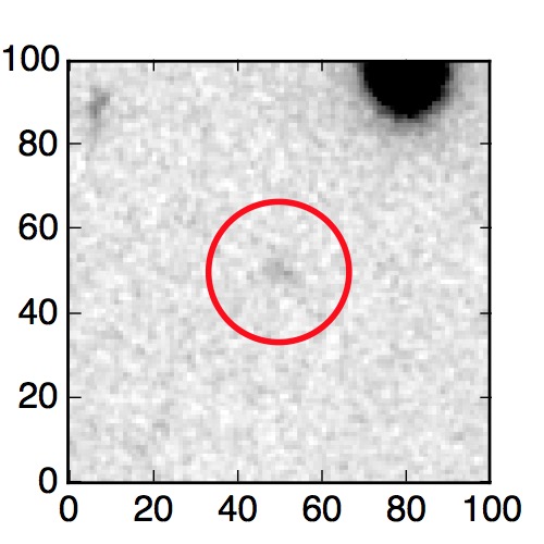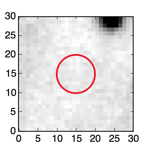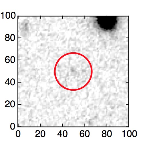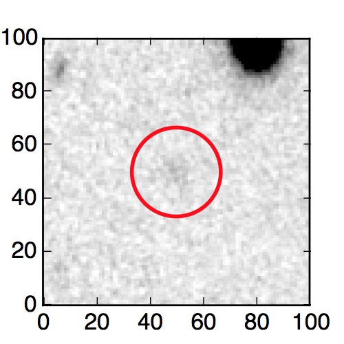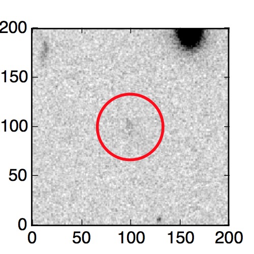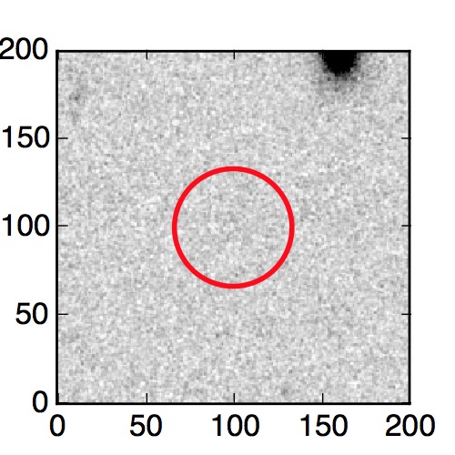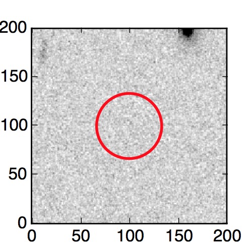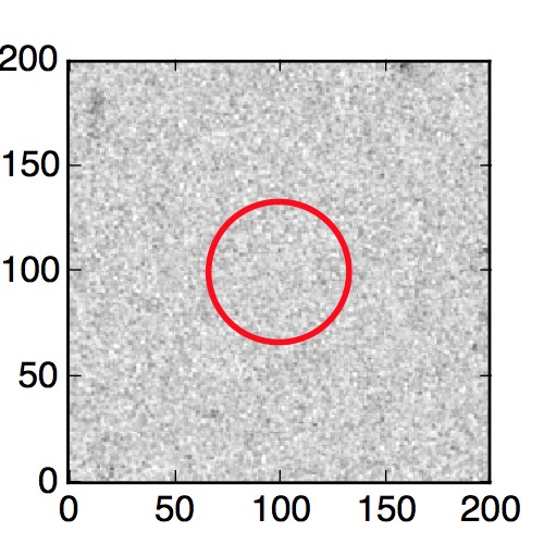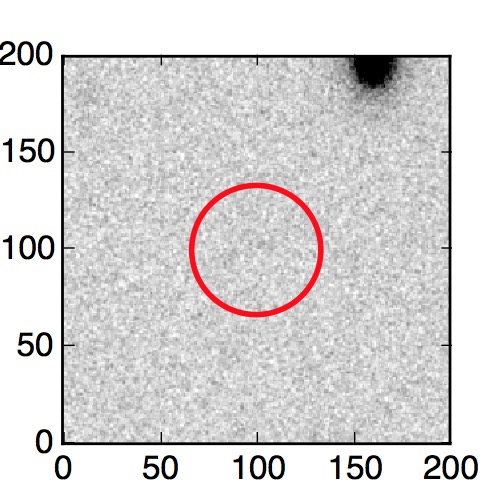 The red circle in the various panels is 1" in radius. The images are 6"x6".