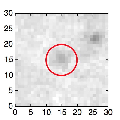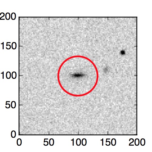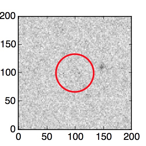 The red circle in the various panels is 1" in radius. The images are 6"x6".