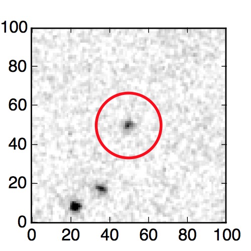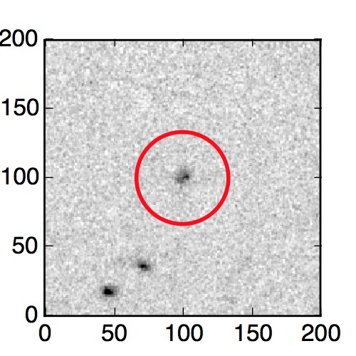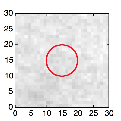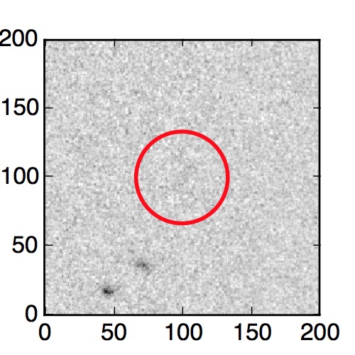 The red circle in the various panels is 1" in radius. The images are 6"x6".