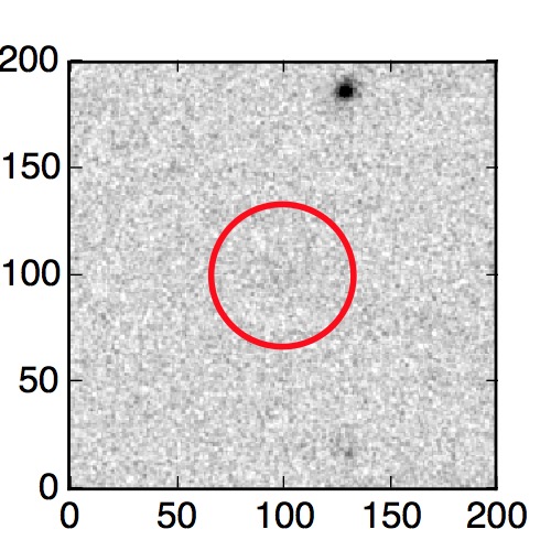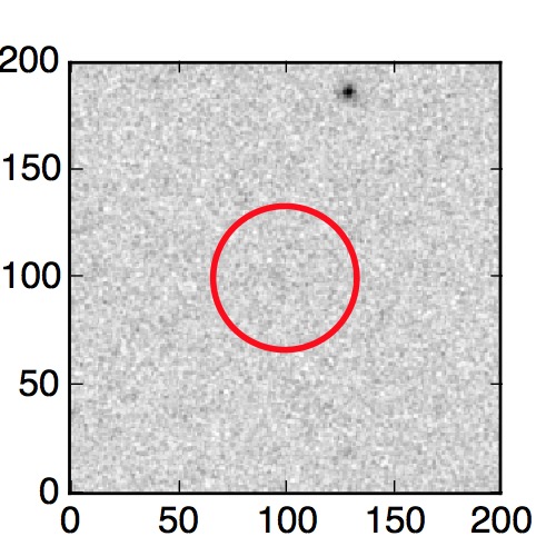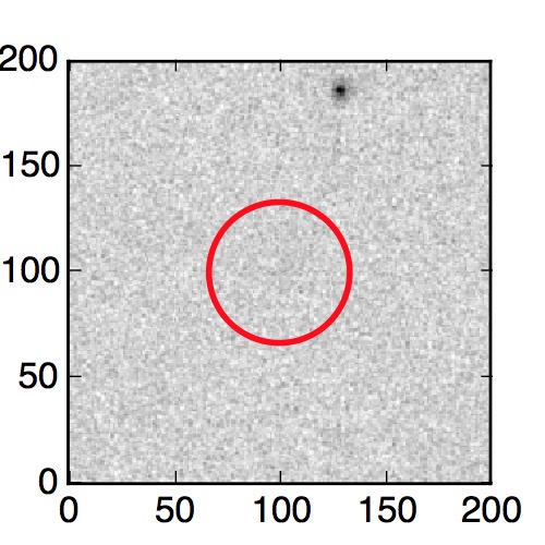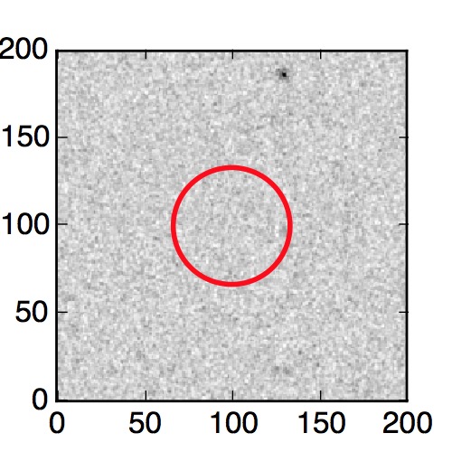 The red circle in the various panels is 1" in radius. The images are 6"x6".