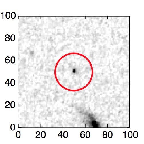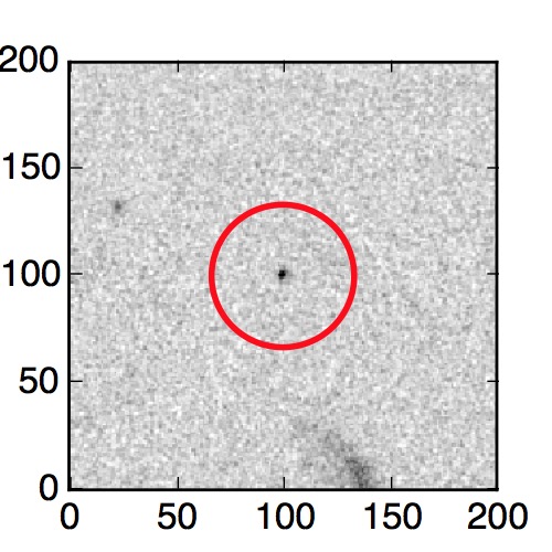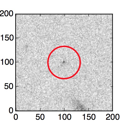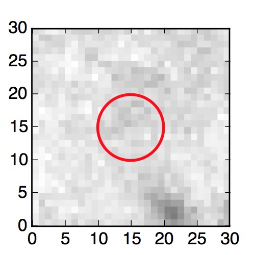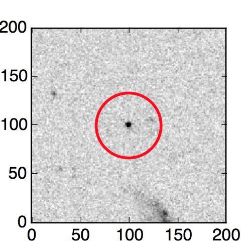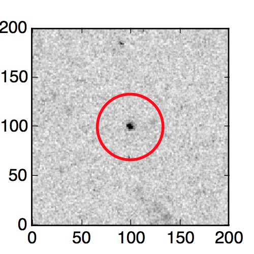 The red circle in the various panels is 1" in radius. The images are 6"x6".
