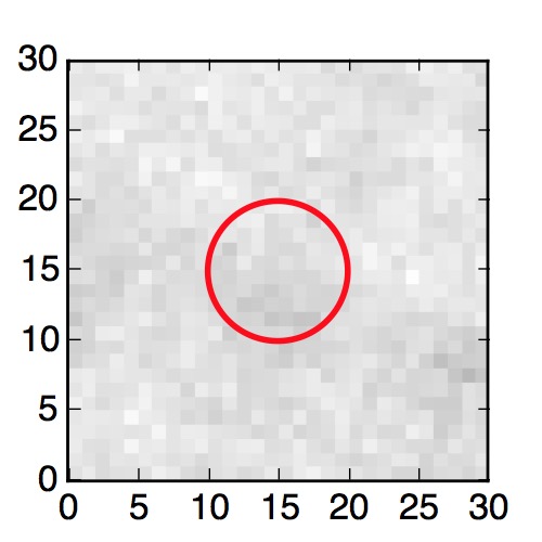 The red circle in the various panels is 1" in radius. The images are 6"x6".