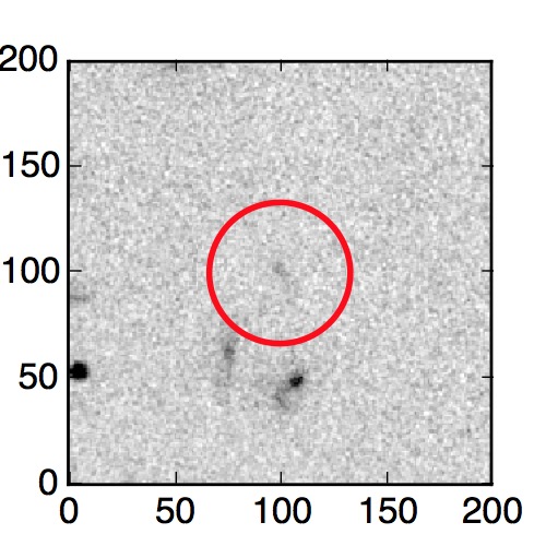 The red circle in the various panels is 1" in radius. The images are 6"x6".
