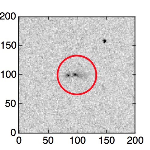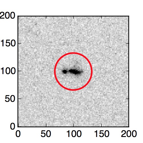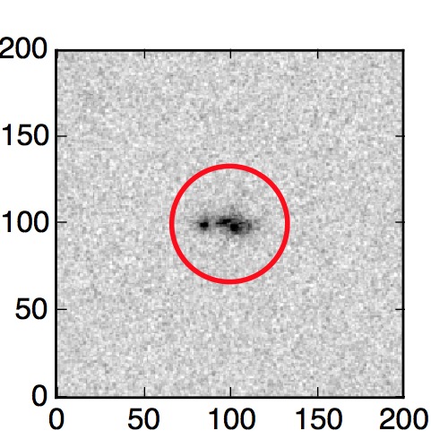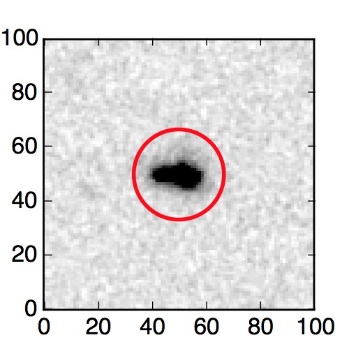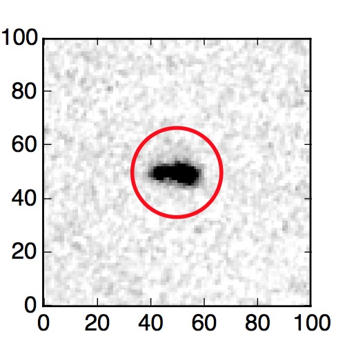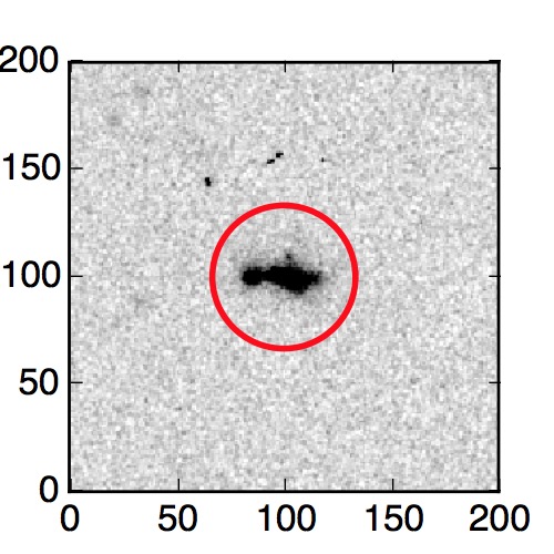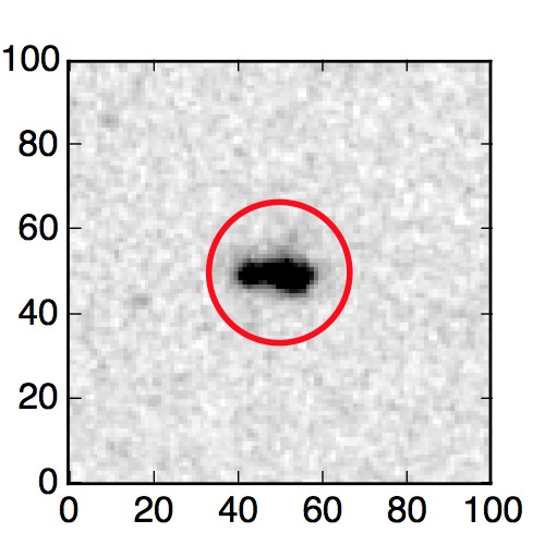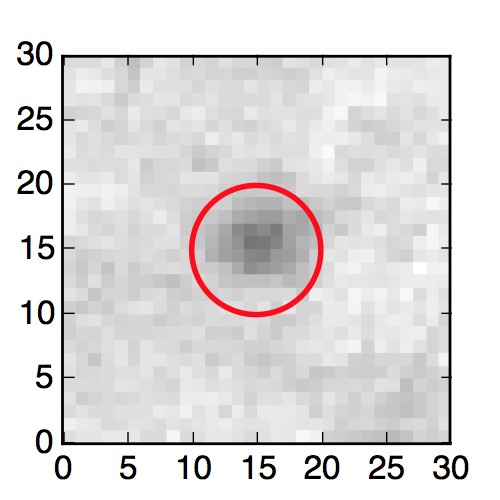 The red circle in the various panels is 1" in radius. The images are 6"x6".