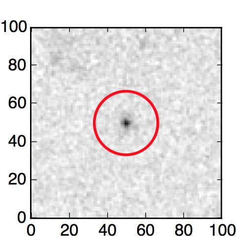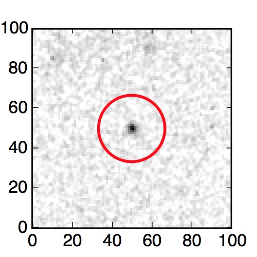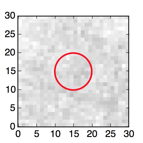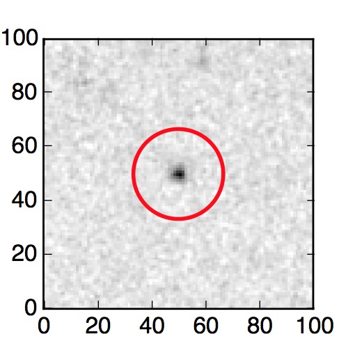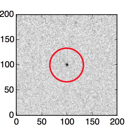 The red circle in the various panels is 1" in radius. The images are 6"x6".