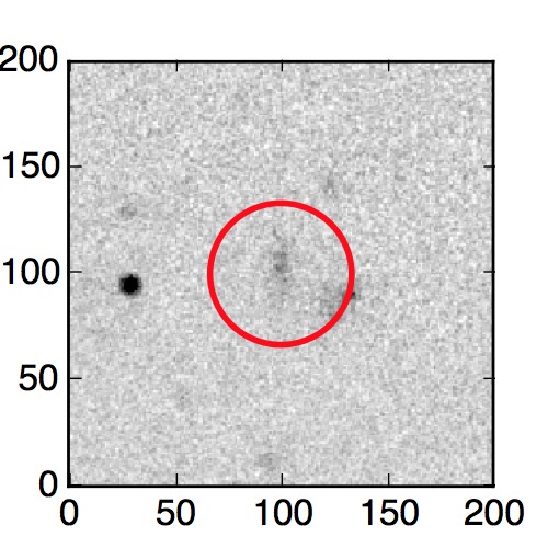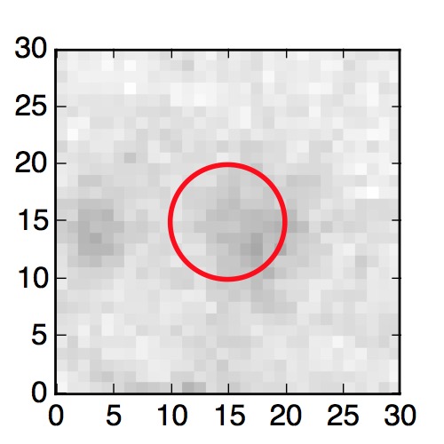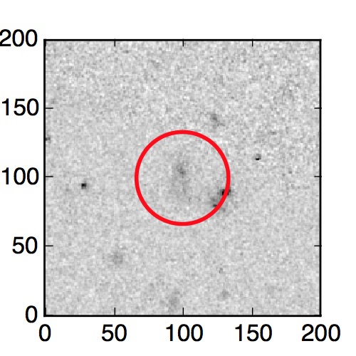 The red circle in the various panels is 1" in radius. The images are 6"x6".