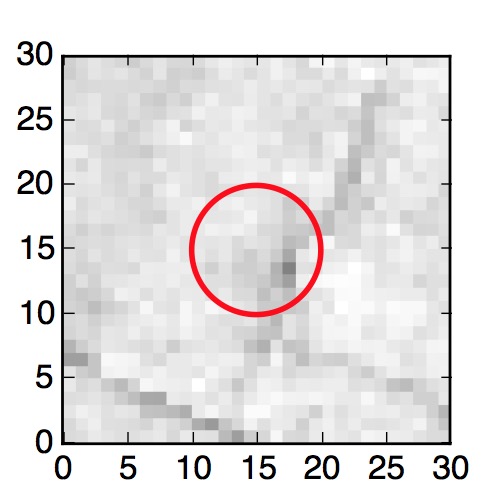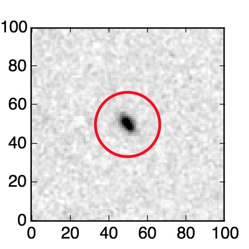The red circle in the various panels is 1" in radius. The images are 6"x6".