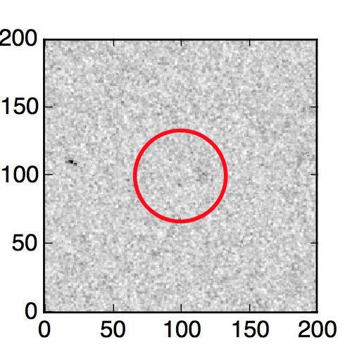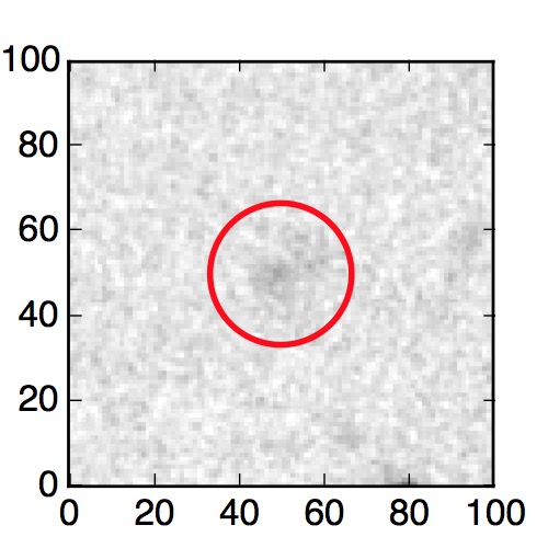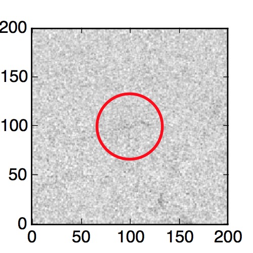 The red circle in the various panels is 1" in radius. The images are 6"x6".