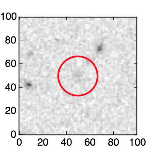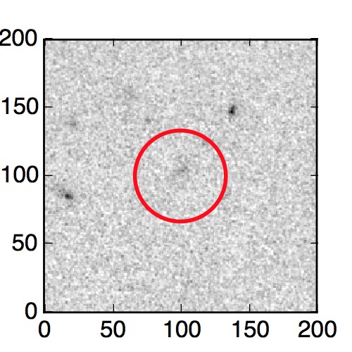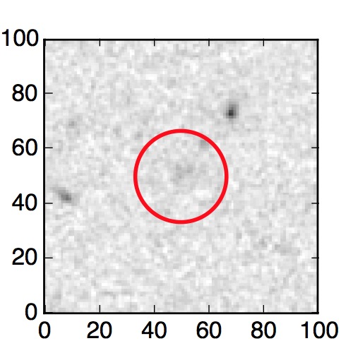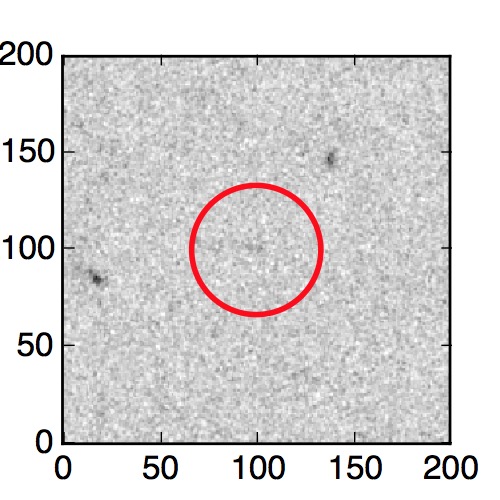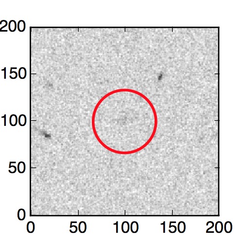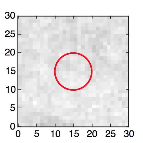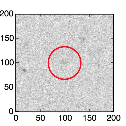The red circle in the various panels is 1" in radius. The images are 6"x6".