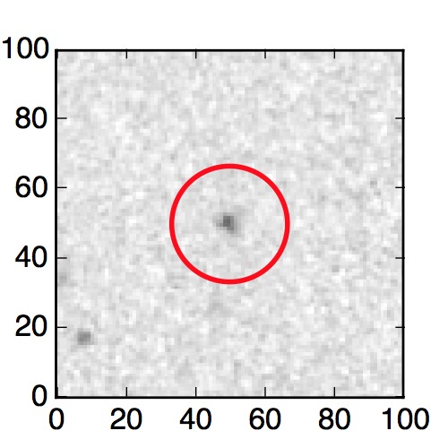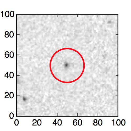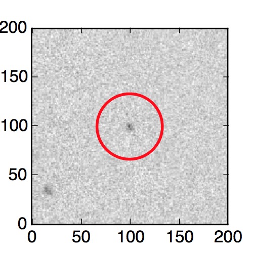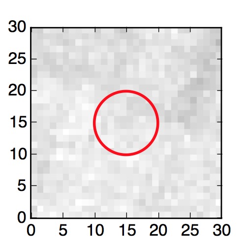 The red circle in the various panels is 1" in radius. The images are 6"x6".