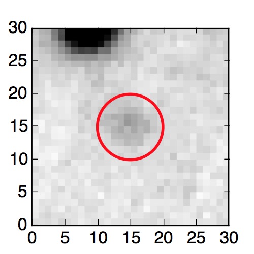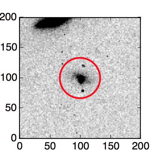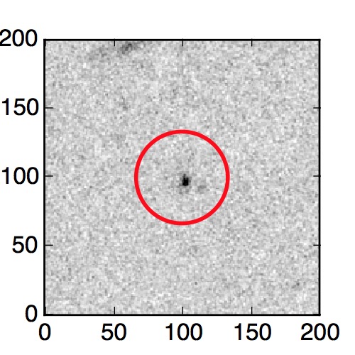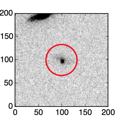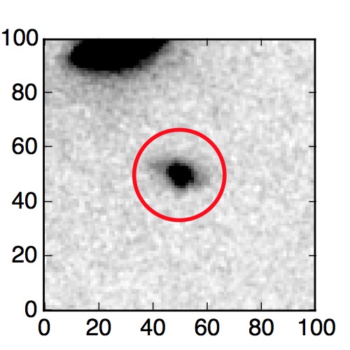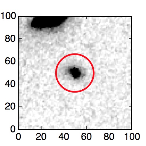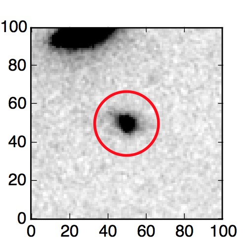 The red circle in the various panels is 1" in radius. The images are 6"x6".