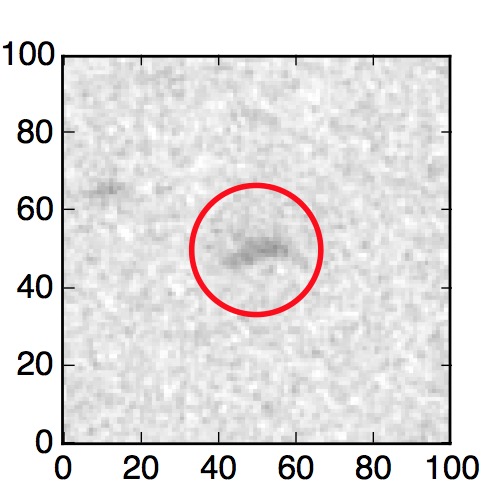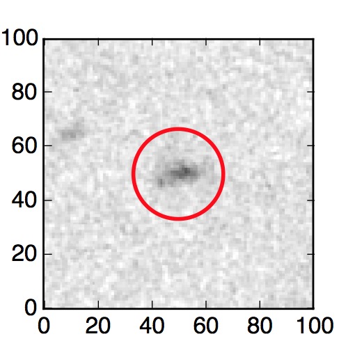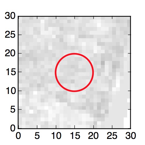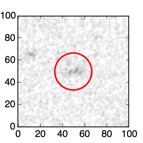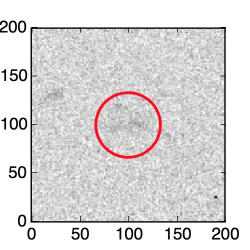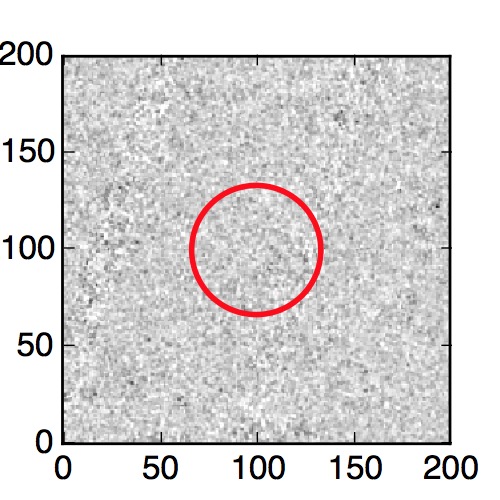 The red circle in the various panels is 1" in radius. The images are 6"x6".