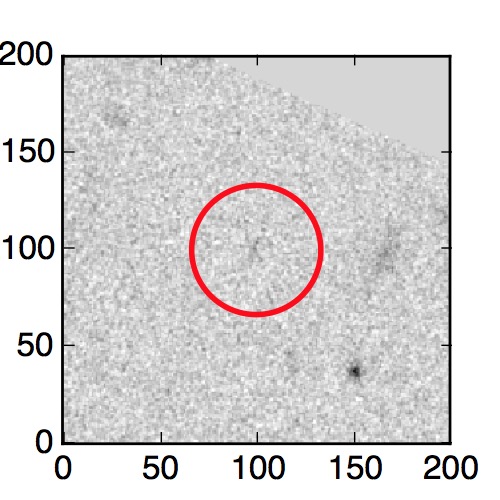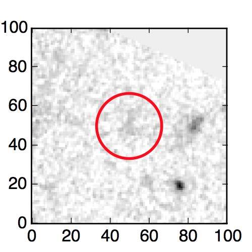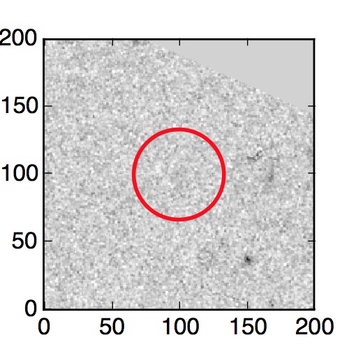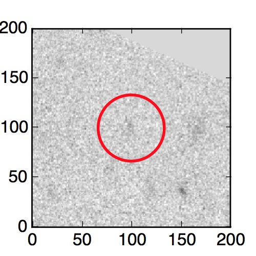 The red circle in the various panels is 1" in radius. The images are 6"x6".