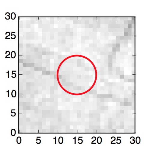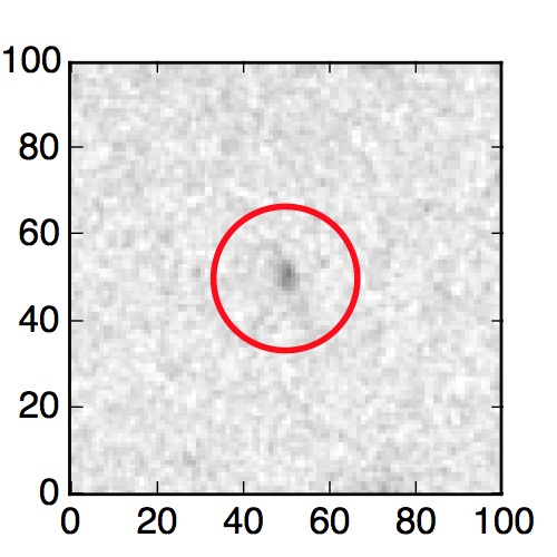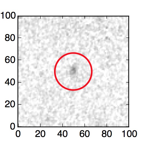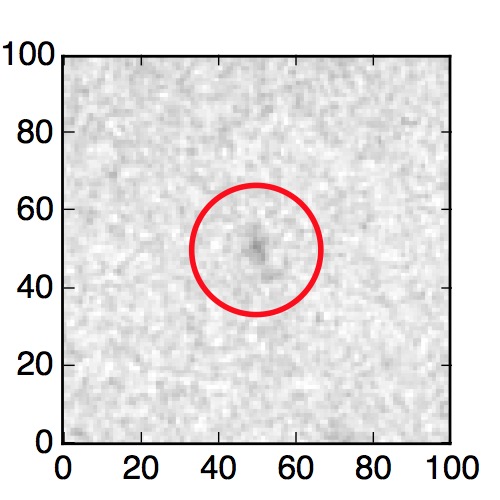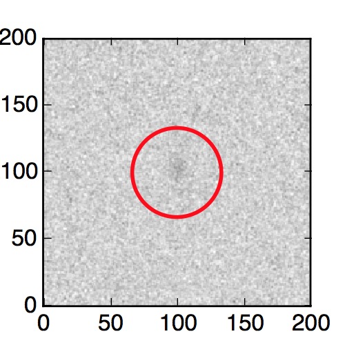 The red circle in the various panels is 1" in radius. The images are 6"x6".