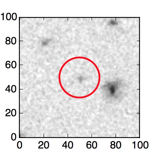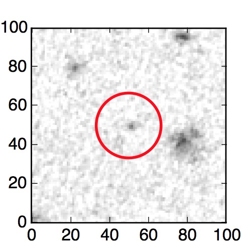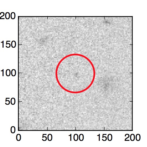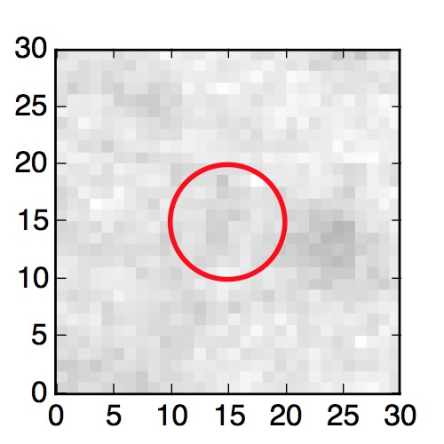 The red circle in the various panels is 1" in radius. The images are 6"x6".