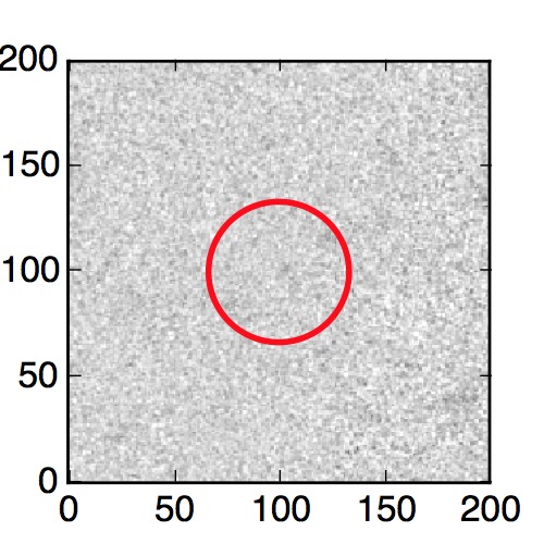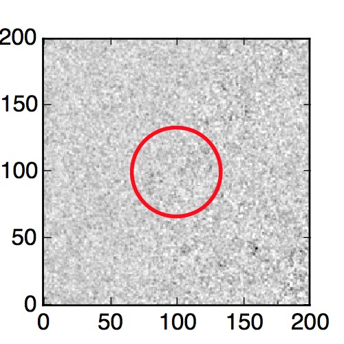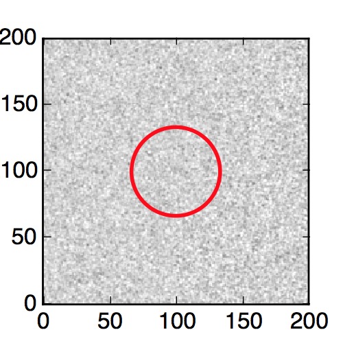 The red circle in the various panels is 1" in radius. The images are 6"x6".