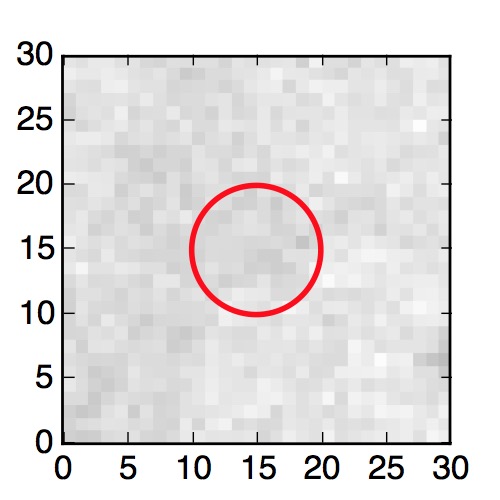 The red circle in the various panels is 1" in radius. The images are 6"x6".