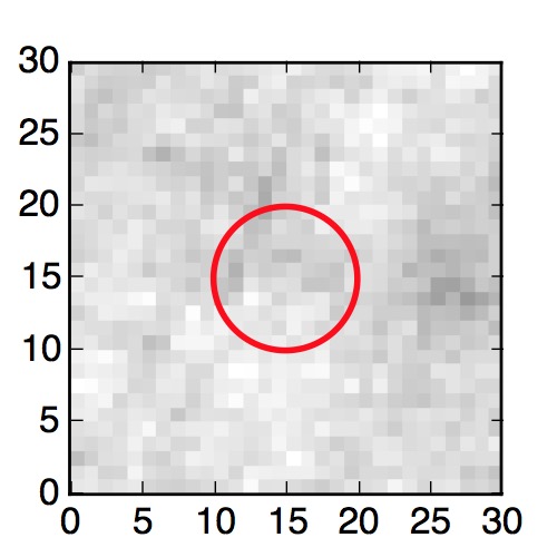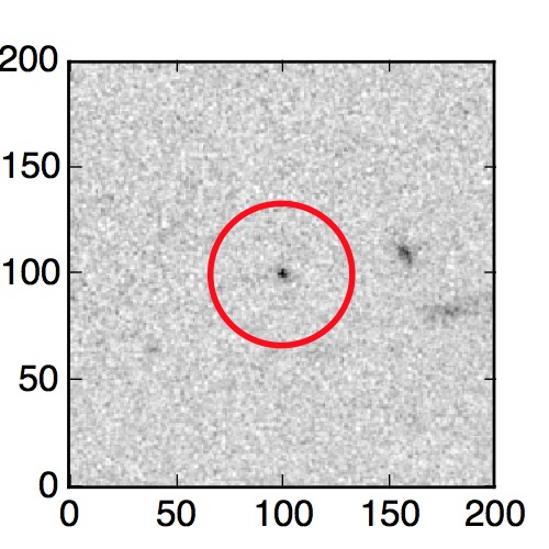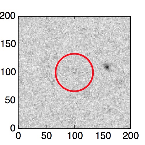 The red circle in the various panels is 1" in radius. The images are 6"x6".