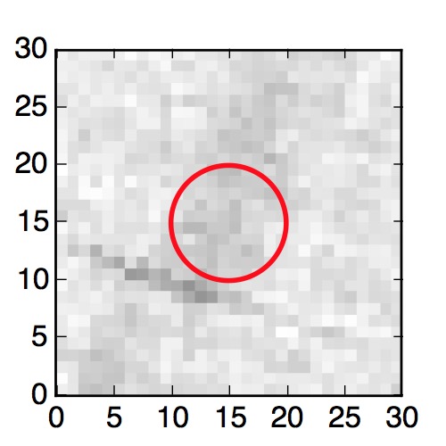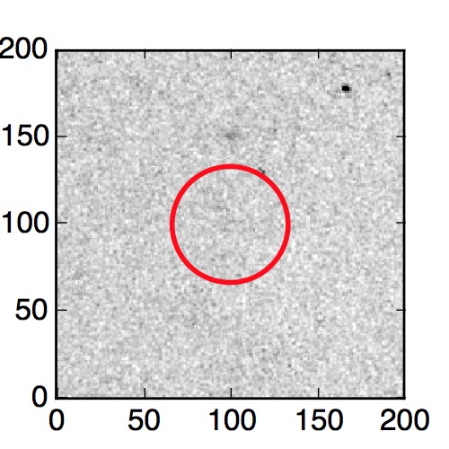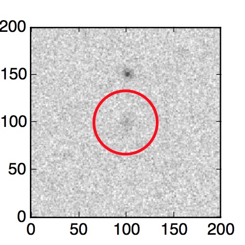 The red circle in the various panels is 1" in radius. The images are 6"x6".