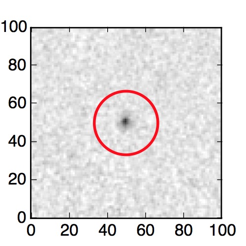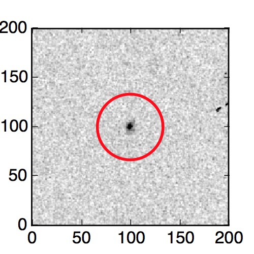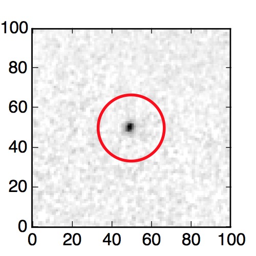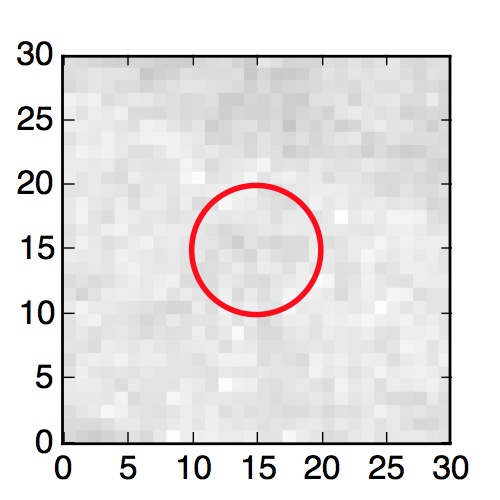 The red circle in the various panels is 1" in radius. The images are 6"x6".
