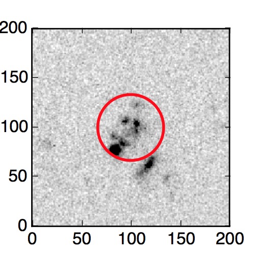 The red circle in the various panels is 1" in radius. The images are 6"x6".