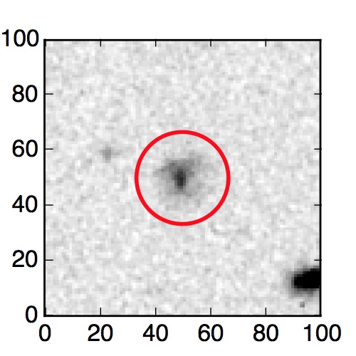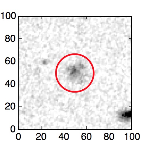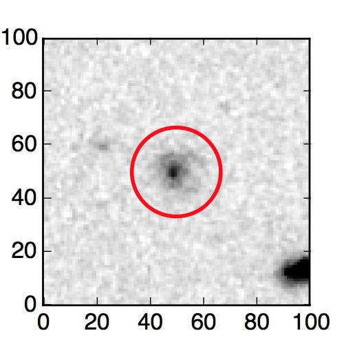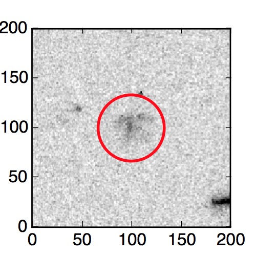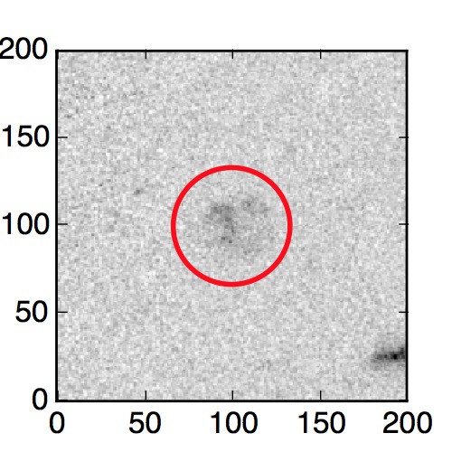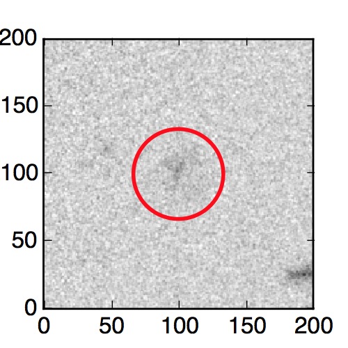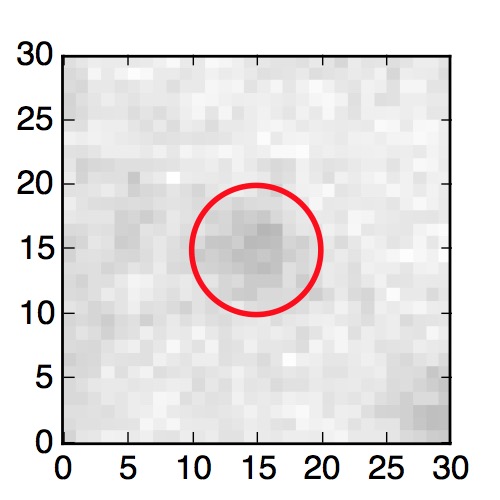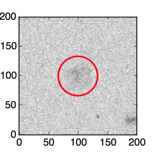 The red circle in the various panels is 1" in radius. The images are 6"x6".