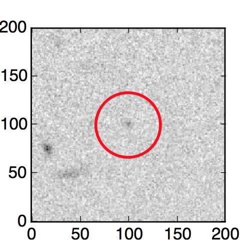 The red circle in the various panels is 1" in radius. The images are 6"x6".